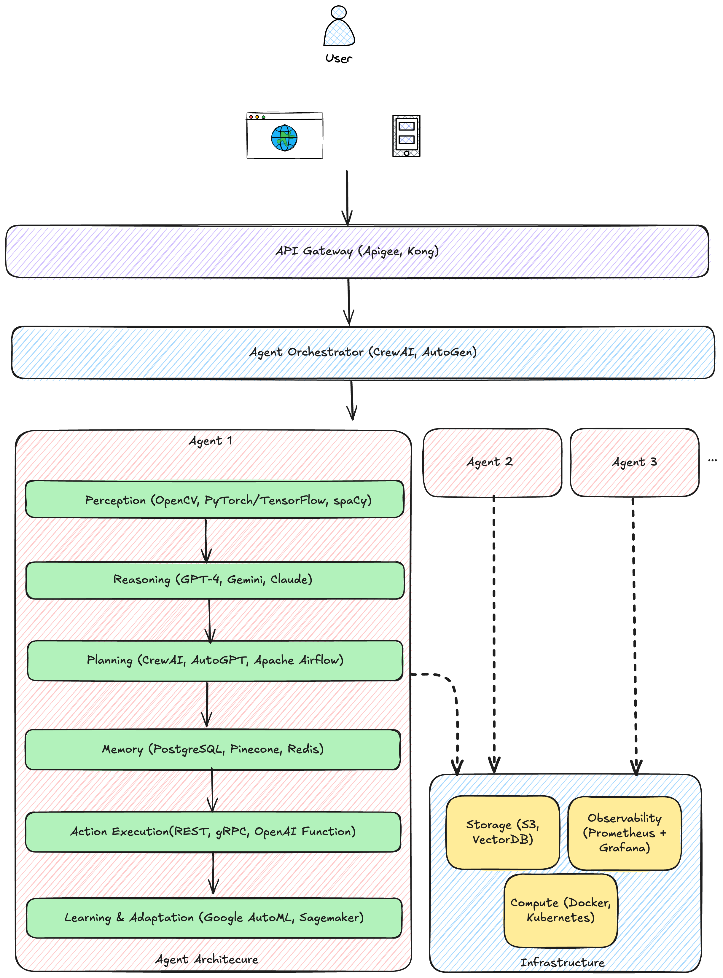 This provides a high-level view of the Agentic AI architecture. In practice, the architecture we visualize always begins with the requirements. For example, building an image processing system for a large-scale enterprise with specific expectations may lead us to choose certain tools and technologies for each respective layer.