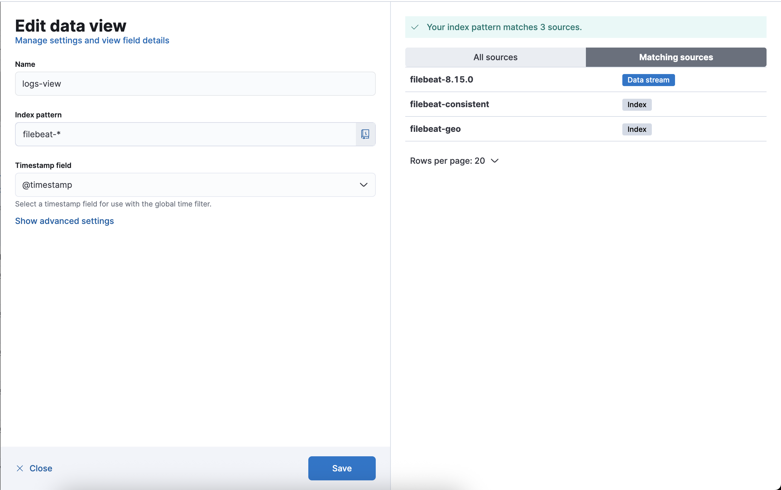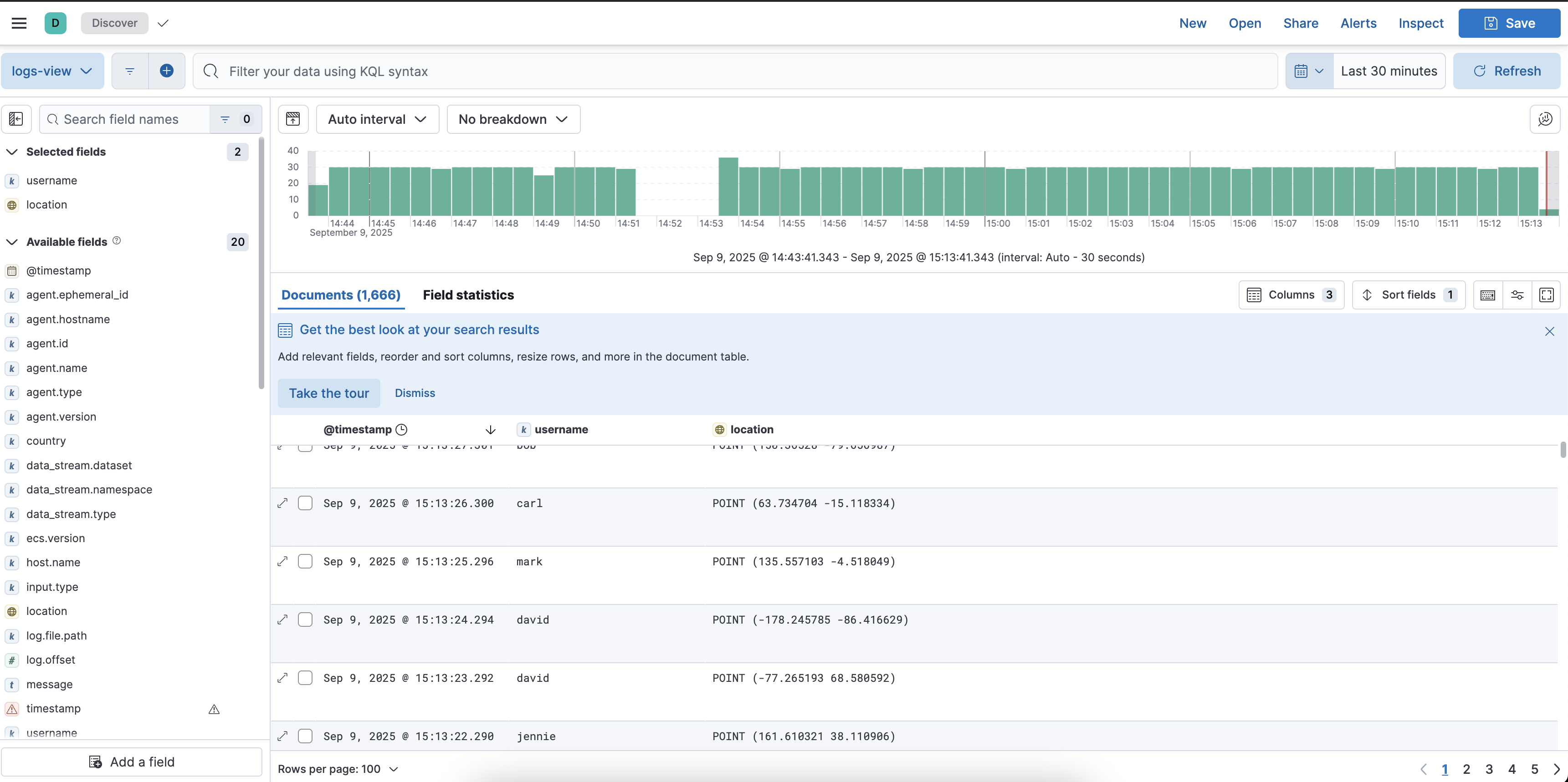 Once we save this data view we can see logs are coming getting updated (update time filter or press refresh).